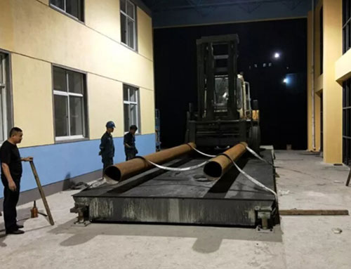 100噸地磅全長21米,重達16噸,由秤體、外表顯示器、高精度傳感器、信號線等多個部分組成,搬家進程有必要謹慎當心,稍有不小心影響到后續稱重,將給公司帶來重大損失。依據前期擬定的搬家計劃,先將外表斷電,撤除端蓋板、接線盒等隸屬配件,再撤除秤體,用電氣焊撤除根底板緊固大墊片,再將其慢慢放入新地基內從頭組裝,最終,外表通電,調整傳感器水平輸出,重復比對稱重數據。